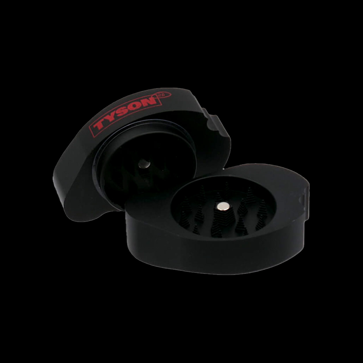 Der edle und exklusiv wie ein angebissenes Ohr geformte TYSON 2.0 Metal Grinder Mike Bite (2-tlg., Ø 40 mm, Aluminium, Black) ist nicht nur ein echtes Designer- und Sammlerstück aus den USA, er grindet/crusht/mahlt auch äußerst zuverlässig und komfortabel. Dazu wurde den Diamantzähnen extra nochmals ein spezieller Riffelschliff verpasst.